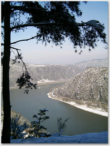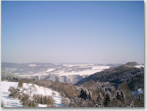 Bild links: Ein Blick ins Rheintal vom Burgenwanderweg aus, der nah an der Ferienwohnung vorbeiführt.
